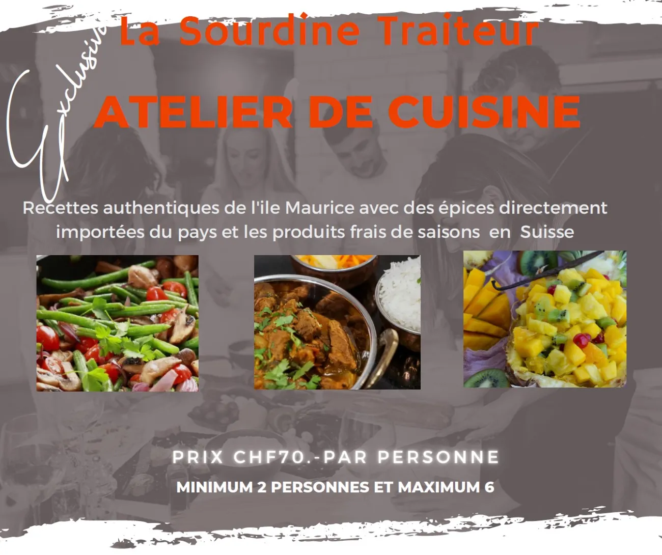 Atelier pour : Minimum 2 personnes et maximum 6 personnes.