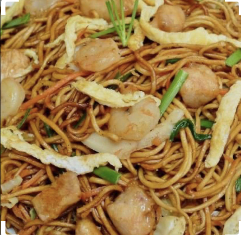 Nouilles au blé, poulet, légumes (sauce à l’ail)